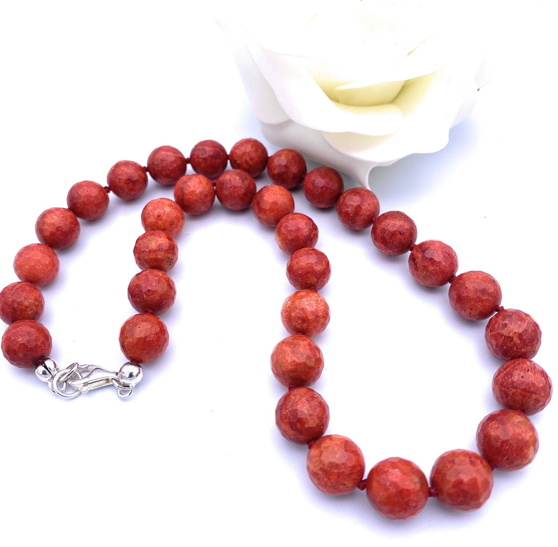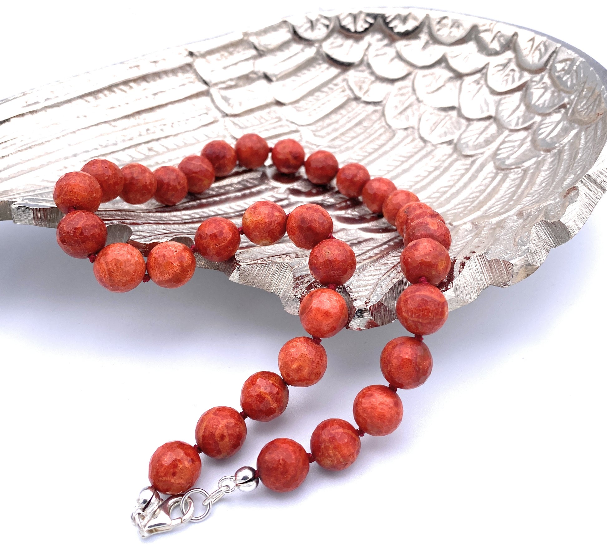 Die Schaumkoralle Kugeln sind facettiert und ca. 12 mm groß. Jede Kugel ist einzeln mit Perlseide geknotet. Die Länge der Korallenkette ist ca. 47 cm. Der Kettenverschluss zählt zu den wichtigsten Bestandteilen bei der Schmuckfertigung. Der Verschluss ist ein stabiler Karabiner. Alle Verschlussbestandteile sind aus 925er Sterling-Silber. Die Kette wurde von mir sorgfältig und mit hochwertigen Materialien gefertigt. Ich verarbeite als Schmuckzubehör nur Materialien wie z.B. Perlseide oder Verschlüsse in hochwertiger Markenqualität. Diese Qualitäten haben sich bereits über Jahre bei unseren Kundinnen bewährt und spiegeln sich in der Kundenzufriedenheit wider.